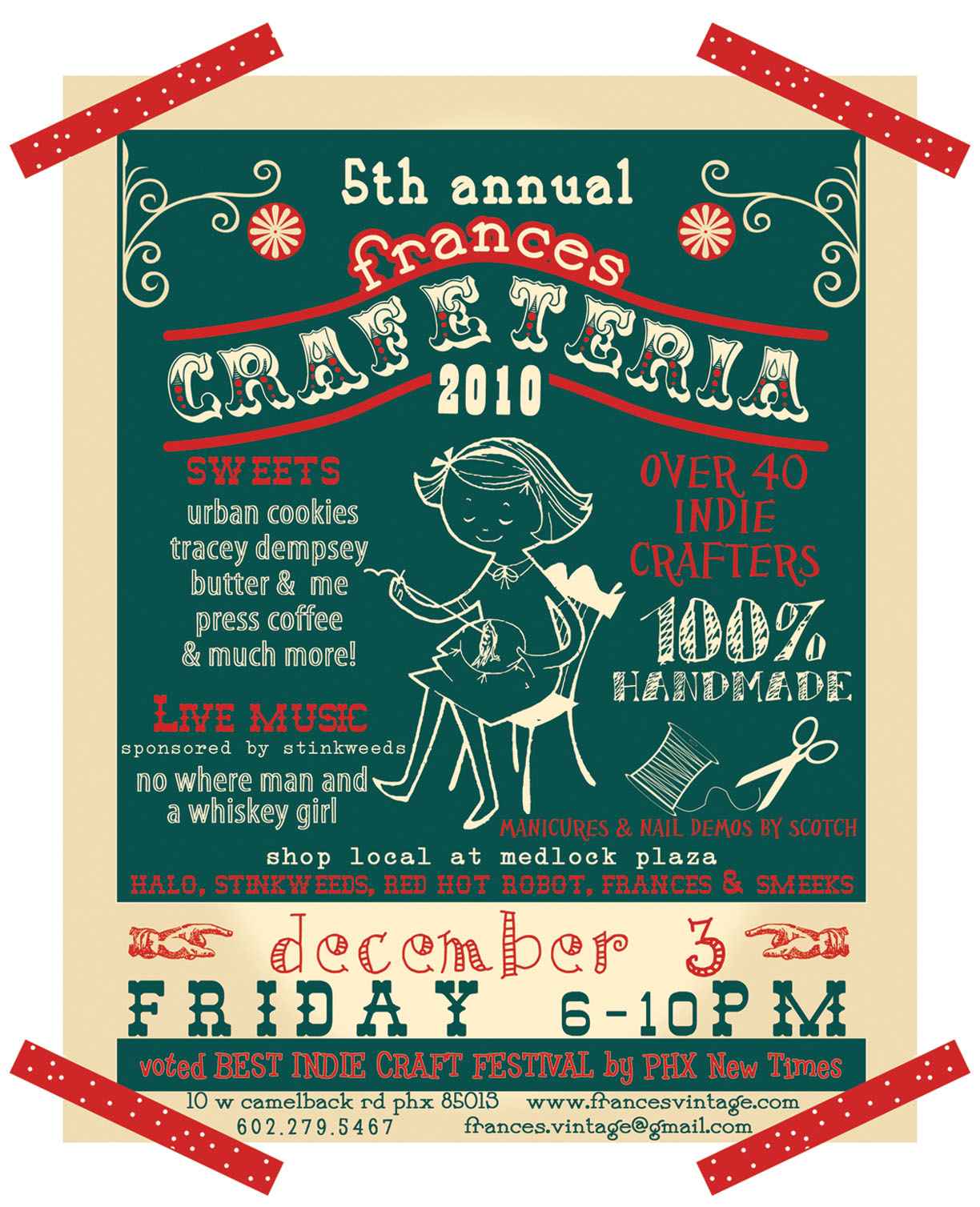Friday night is CRAFETERIA at Frances Vintage – 6-10 pm, 10 w. Camelback Road, Phoenix. Look for 40 local artists selling their handmade crafts. I will be there all bedazzled in pink-ness! Yummy!