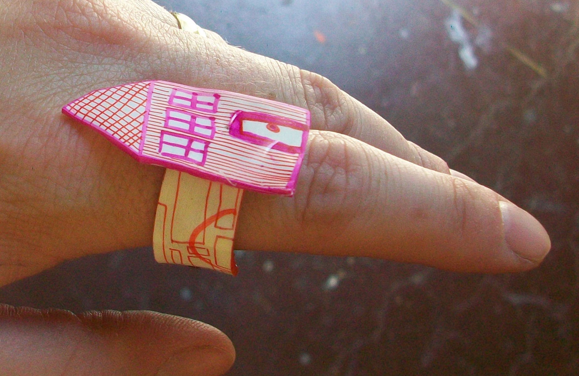 Playing with the sheets of shrink plastic is fun times! I made this super cute house ring. Those most important thing is just to remember scale because the plastic shrinks 75% or so. To glue the house to the band I used E-6000 glue which glues together anything but silicone. The second photo is the underside of the ring which I glued a piece of felt to to soften the blow in case I hit my hand down too hard on a table so I don’t crack the plastic. So fabulous and so fun to wear!
